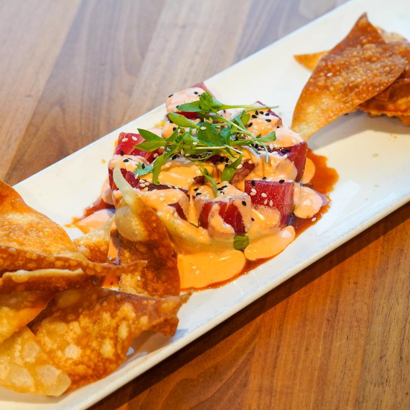 Gluten-Friendly (GF) | Vegan (V) | Served 11:00 am to close Monday - Friday and 2:00 pm to close Saturday and Sunday • *These items are served raw or undercooked, or contain, or may contain raw or undercooked ingredients. Consuming raw or undercooked meats, poultry, seafood, shellfish, or eggs may increase your risk of foodborne illness | 20% auto gratuity on parties of 8 or more.